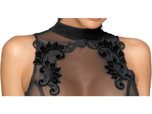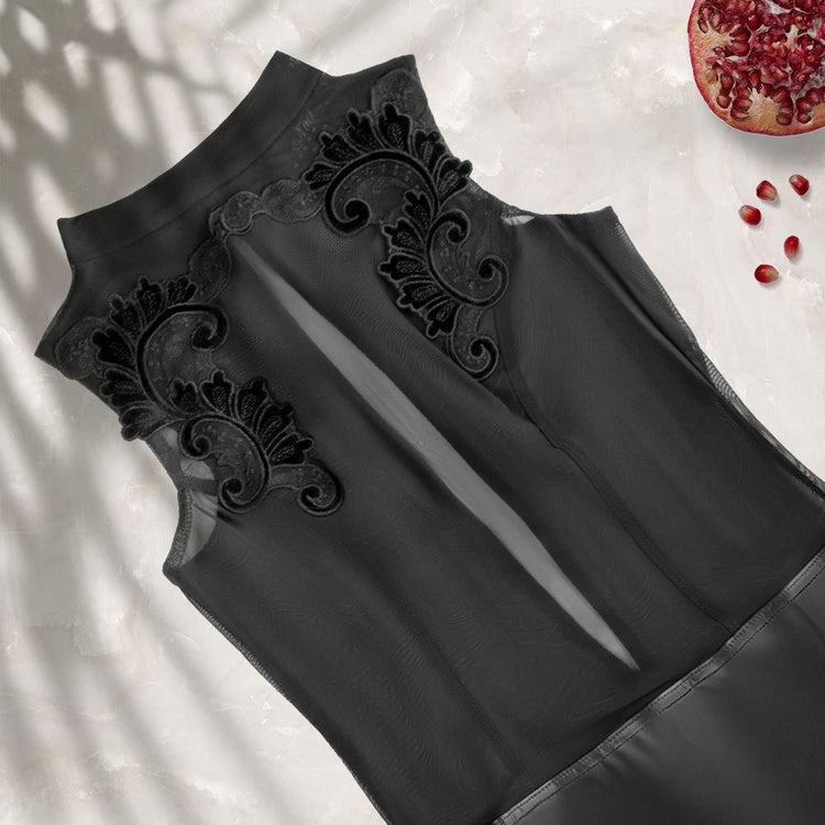 Breath-taking Wet Look Skirt / Sleeveless Dress with fine embroidery GORGEOUS